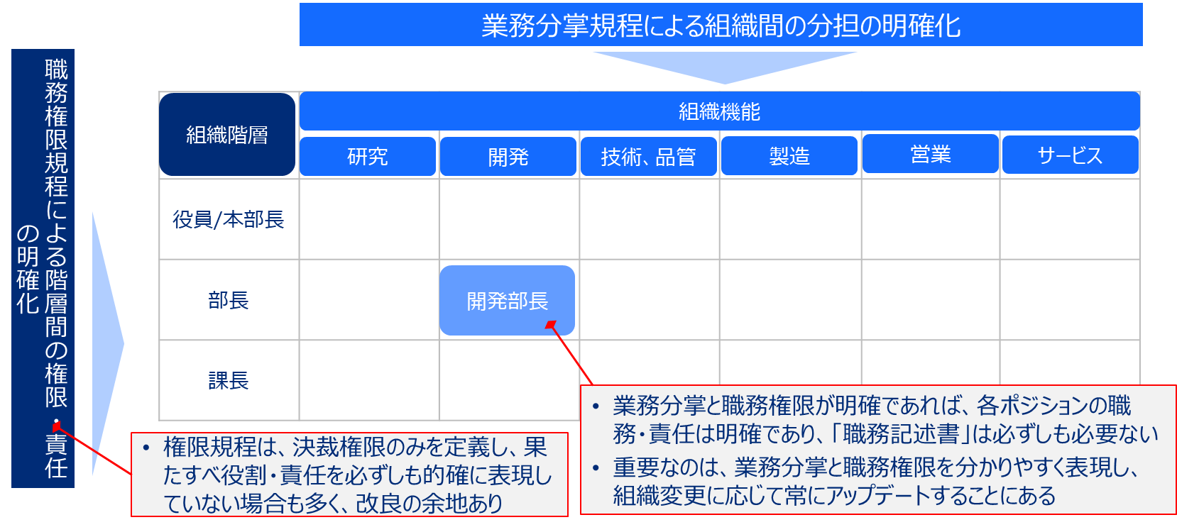 ポジションの役割・責任は、職務権限規程や業務分掌規程など、組織規程が整備されていれば、把握することができる