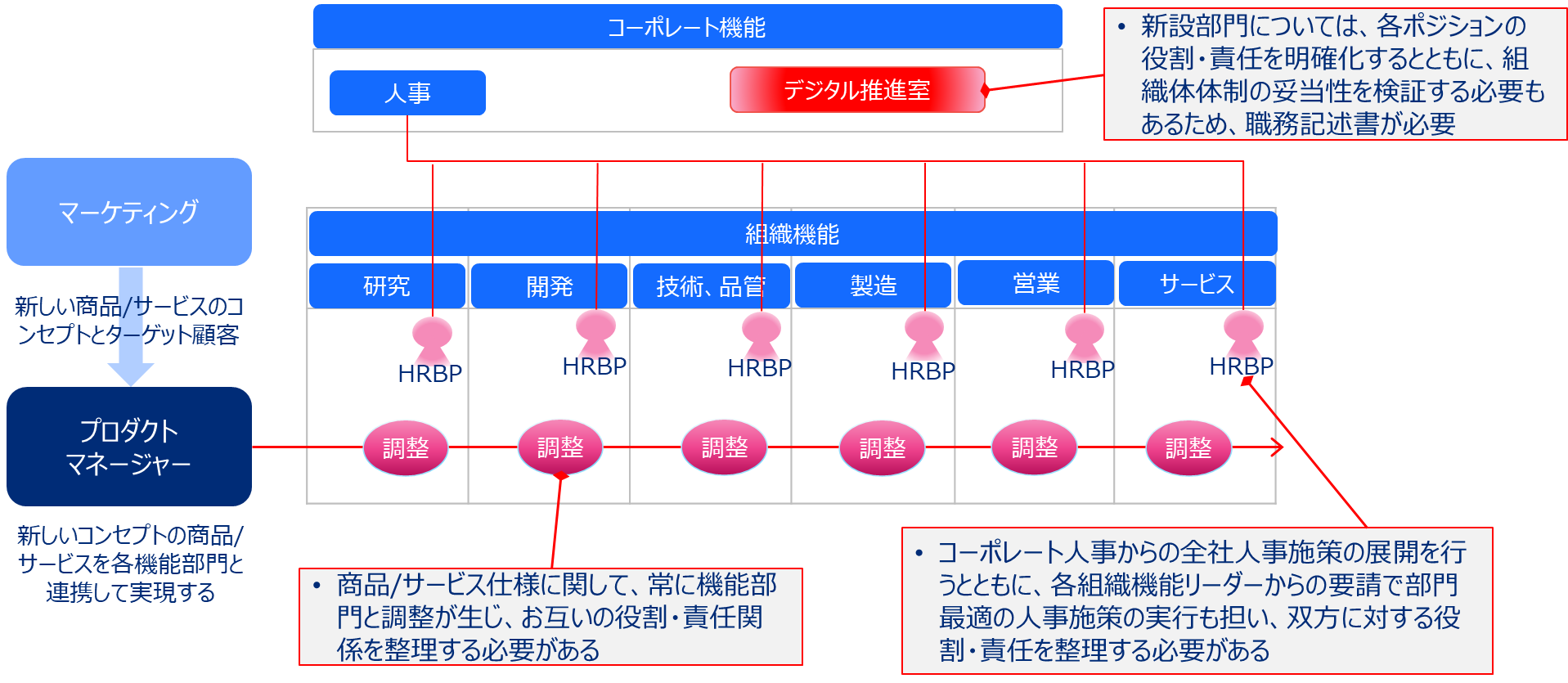 そのポジション単体で、役割・責任を遂行することができず、常に他の機能との調整や連携のもとに職務を遂行するプロダクトマネージャー等のポジションは、役割・責任関係を整理するため職務記述書は有効なマネジメントツールになりうる
